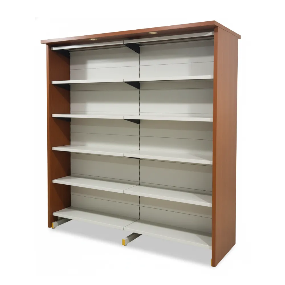 The unit also comes with an integrated top canopy featuring built-in lights, ensuring that the titles on the top shelves are clearly visible. At the bottom, sturdy leveling feet ensure the rack stands firm even on uneven floors. Practical, elegant, and built to last, the Library Shelving System is the perfect upgrade for any space that values knowledge and organization.